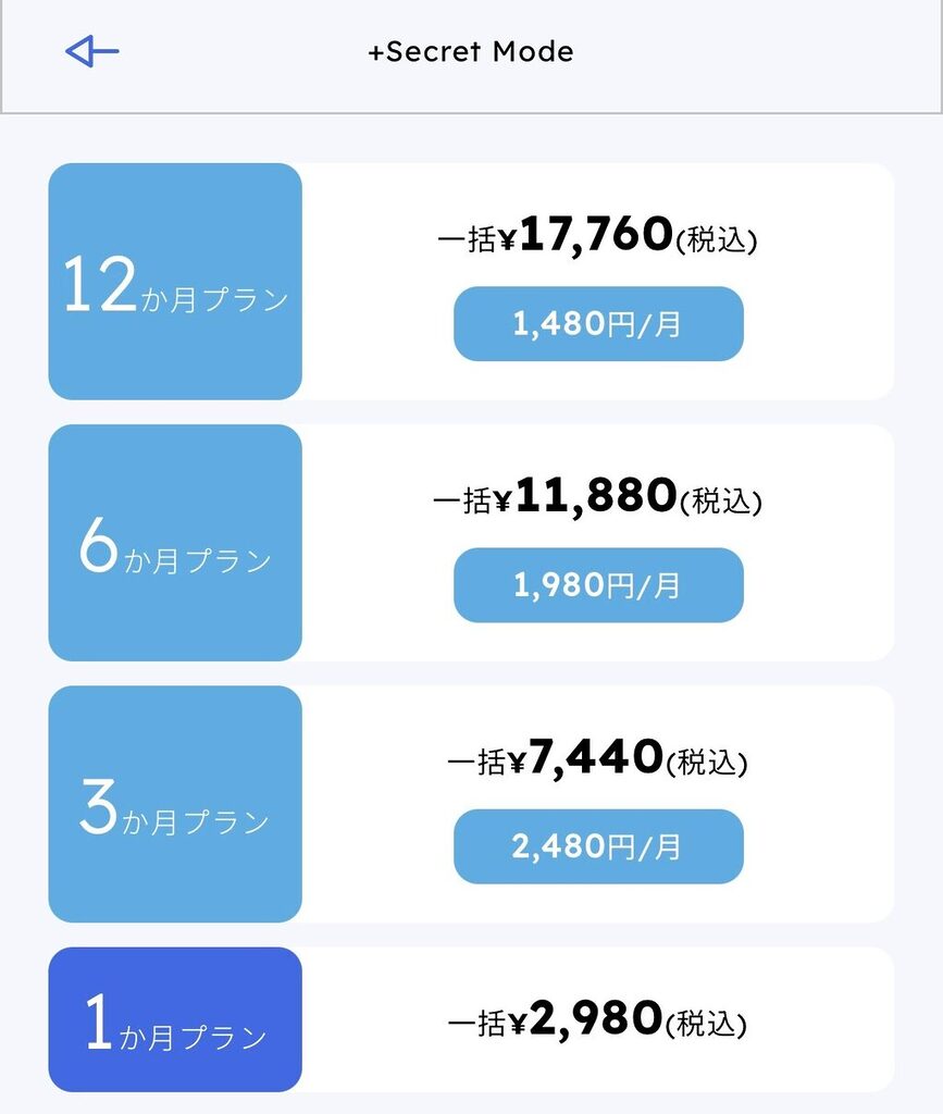 +Secret Modeは、自分のプロフィールを非公開に設定できるオプションプランです。