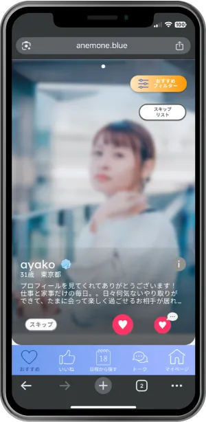 - ご安心ください。Anemoneは、創業者自身がセカンドパートナーシップの経験者です。「当事者が本当に安心して使える場所を作りたい」という想いから、業界で唯一の審査制を導入するなど、どこよりも安全性にこだわっています。