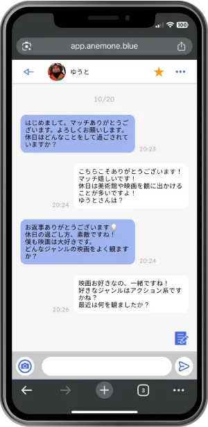 - マッチング後はアプリ内のチャット機能を使って、匿名で安全に会話ができます。LINEやメールアドレス、電話番号などを交換せずにやり取りできるのも安心ポイントです。